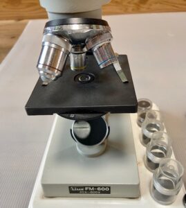 光学顕微鏡:Vixen FM-600/40x–600xクラスの単眼顕微鏡・外部ライト付き
